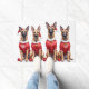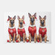 High-energy and loyal Belgian Malinois dogs look alert and ready for the holidays in their festive Christmas Santa outfits. A perfect design for working dog enthusiasts and Malinois owners.