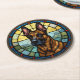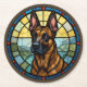 Belgian Malinois Stained Glass Style Illustration Round Paper Coaster