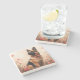 The coasters are gorgeous, a quality feel and heavy weight. They look like a precious archeological find. A rustic stone juxtaposed with a modern floral black and white print. I like the way the print goes slightly imperfect on the cut stone edges giving them a kind-of natural beauty.