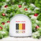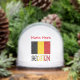 Personalised snow globe featuring the Belgian Flag with the word BELGIUM underneath, in the colours of the flag. A space for a name is featured as well, in red letters, so you can personalise it, or, create a gift. The flag of Belgium is three vertical stripes in a tricolor, of red, black and gold or yellow. Great holiday gift or stocking stuffer.