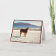 This Belgium Draught Horse is standing in a snowy landscape with mountains in the background and a blue sky above. On the front of the Card it says "MERRY CHRISTMAS".