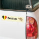 Belgian heart-shaped flag plus map with editable text on a durable 4mil thick vinyl bumper sticker.
