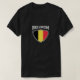The national flag of Belgium is infused into a shield shape and sat below the country name.