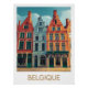 An architectural illustration of Belgium highlighting the colorful Flemish façades, typical of the northern towns, under a clear sky. An elegant poster for urban and cultural wall decoration.