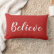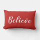 Enjoy our "Believe” text on a variety of products. Instantly add warmth and Christmas cheer to your house with our red and white throw pillow.