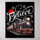 Believe Christmas Trains Xmas Santa Family Pajamas Poster