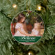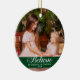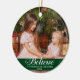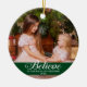 Believe Elegant Calligraphy Family Photo Green Ceramic Ornament