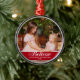 Believe Elegant Calligraphy Family Photo Red Metal Ornament