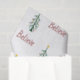 Festive Believe tissue paper, with a cute hand drawn evergreen tree and simple typography design. With customisable typography lettering you add your own lettering. Great for that special holiday present this Christmas season.
