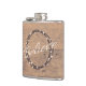 The flask itself is fine. It’s a cheap flask, obviously bought in bulk, however am prepared to overlook that. Given that it is a personalized item, I would have liked to have seen gift boxing instead of the generic packaging. Terrible printing, and/or quality. It’s a cheap, tacky vinyl. It is not cut straight and is also applied in a way that it is overhanging the bottom, causing the glue to catch on items and it will eventually roll and tear, damaging the wrap.