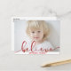 Believe HOLIDAY red Hand Letter Script PHOTO Postcard