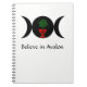 A spiral notebook with the phrase "Believe in Avalon" and the ORG logo.