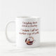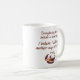 "Everybody should believe in something. I believe I'll have another cup of coffee." A funny coffee mug quote perfect for any coffee lover! Elegant handwritten style text over a stylised image of a steaming coffee cup and coffee bean in purple and brown.