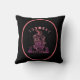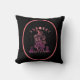 Stylish throw pillow with cool celestial Wiccan design featuring crystals, snake and moon phases on starry black night sky background, with "Believe in Magic" text