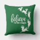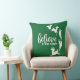 Believe in Magic Christmas Pillow, Reindeers Print Throw Pillow. Made in the USA 100% cotton pillow. Fully Customisable Beautiful decorative holiday pillow, Christmas and all-season pillow accents, all custom. Cool Christmas Message Red Roudolf the Reindeer graphic print with letter print "Believe in the Magic" Featured is cute Christmas green colour pillow with instant one click multicolor any colour options.