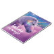 This enchanting notebook cover features the bust of a glowing purple-white unicorn set against a cosmic sky of purple and teal clouds, sparkling star clusters, and a dreamy aurora-inspired atmosphere. Below the unicorn’s head floats the word “believe” in elegant white script, followed by “in magic,” tucked gently beneath the unicorn’s chin.