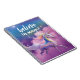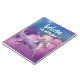This enchanting notebook cover features a silver, blue and yellow faux glitter unicorn set against a cosmic sky of purple and teal clouds, sparkling star clusters, and a dreamy aurora-inspired atmosphere. Above the unicorn’s head floats the elegant white script, “believe in magic.”