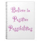 A reminder to "Believe in Positive Possibilities" in pink on the cover of this cheerful lined journal or notebook.