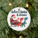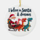 believe in Santa and dinosaurs (Santa riding dinos Ceramic Ornament