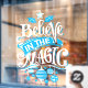 Bring the magic of Christmas to your customers; friends and family this festive holiday season with this decorative typography design in blue and white that reads "believe in the magic". The lettering is framed by Christmas tree decorations / baubels and a christmas star. The colours of the window art may be changed to any of your choice. Happy holidays!