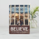 Cute and modern holiday card with a clean hand-drawn/hand-written type "BELIEVE In the magic of Christmas" with small stars on a dark wood background. Add your custom photo! Backside includes a sentiment and area for family name(s) with a hand drawn diagonal stripe pattern that can be used or swapped out for your own graphic or photo. Use "Customise it" to choose a background colour to match your photo or style!