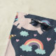 Add a magical touch to the ocean trip of your little girl with this adorable custom blue and pink unicorn pattern beach towel. Towel has rainbows, clouds, birds, and unicorns. Text says Believe in Unicorns and there's a place for the first name of your little kid.