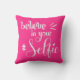 Believe in your Selfie Script White Pink Cushion