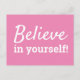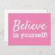 Believe in Yourself Inspirational Quote Pink White Postcard