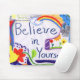 A mousepad featuring Ashlee Craft's "Believe in Yourself" poster.