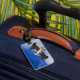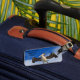 A pelican with it's wings out wide, luggage tag you can personalise with your name and address on both side if you like.