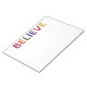 This pad of notes is perfect for anyone! With it's bright, happy colours and classic block print saying "Believe" it will lift anyone's spirits. Believe in good, believe in promise, believe in possibility, believe in love, believe in hope, believe in goodness, believe in yourself.