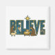 The word "Believe" with a beautiful nativity scene on a holiday magnet containing the manger with baby Jesus, Mary, Joseph, a shepherd, sheep and a donkey. Would make a thoughtful Christmas gift or stocking stuffer for Christian family and friends.
