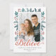 Believe Script Festive Holly Berries Pine Photo Holiday Card