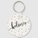Remind yourself to believe in you with this keychain. This design features faux glitter dots background with the word Believe in a fancy calligraphy script. #Believe