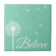 Believe Script White Dandelion Silhouette Tile