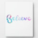 The word 'believe' written with cursive fonts. All digital image with watercolor effect applied to design.