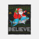 Believe Xmas Funny Santa Riding Shark Ugly Christm Fleece Blanket