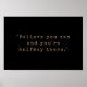 Motivational quote poster featuring "believe you can and you are halfway there" in vintage black and gold typewriter typography.