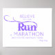 A running motivational poster featuring an original quote by fitness motivational author Felicity Luckey. The quote on this poster reads, "Believe you can run a marathon and you're halfway there." The words are in a lavender shade on a white background.