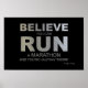 A stark fitness motivational running poster in black with steel grey words: Believe you can run a marathon and you're halfway there. ~ Felicity Luckey An inspirational running poster for anyone who has ever wanted the daily visual motivation to run a marathon.