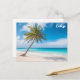 Anyone would love to receive this tropical travel postcard featuring a beautiful photo of a palm tree, the beach and the ocean in the town of San Pedro in Ambergris Caye, Belise!