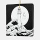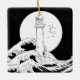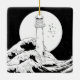 A black and white line art illustration of Bell Rock lighthouse in Scotland. Huge waves crashing around the base of the lighthouse.