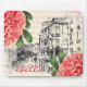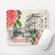 Beautiful Italy. Mousepad with peony botanical, musical notes and a Italian water canal.