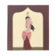 A cute illustration of a belly dancer in maroon and yellow colors. This lovely girl wears a traditional Arabian belly dancing style costume. Cute Arabian Nights theme.