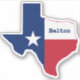 Belton Texas sticker with vintage look TX flag design and state shape.