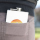The flask itself is fine. It’s a cheap flask, obviously bought in bulk, however am prepared to overlook that. Given that it is a personalized item, I would have liked to have seen gift boxing instead of the generic packaging. Terrible printing, and/or quality. It’s a cheap, tacky vinyl. It is not cut straight and is also applied in a way that it is overhanging the bottom, causing the glue to catch on items and it will eventually roll and tear, damaging the wrap.