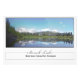 A colourful digital illustration of Mount Rainier, the surrounding landscape and the blue sky reflecting into the still waters of a lake. The artwork has a grey border. Below the image is the title: Bench Lake Mount Rainier National Park, Washington, within a border and in the same grey colour.