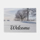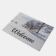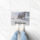Customisable winter welcome doormat featuring a bench sits up on top of a snow covered hill on a cold winter day with a line of foot prints. I took this near Lake Springfield in Springfield Missouri, United States. Looking for more prints or products? Feel free to visit my store: http://www.zazzle.com/timelessmomentsphtgy This photo was taken by Jennifer White with Timeless Moments Photography. All images are copyrighted © Timeless Moments Photography.
