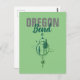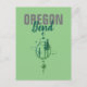Modern word art features Oregon in distressed grey font with Bend in a modern aqua script font with geometric trees and planets logo style graphic on green background