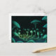 post card featuring a digital science fiction/fantasy landscape painting of some explorers in a dark cave beneath the earth filled with luminescent mushrooms. inspired by jules vernes journey to the centre of the earth. exclusive art & design by frank glerum art.